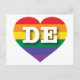 This postcard features a heart with a rainbow pride design and the bold, white, capital letters DE, the official abbreviation for Delaware, the first state. The reverse side of the postcard is blank, awaiting your personalised text or handwritten sentiments. Show your true colours, support marriage equality, and celebrate gay pride.