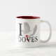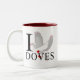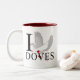 Instead of the ordinary design of "I Heart Doves”, the 'Heart' is changed to a striking illustration of a red dove. A bit of trivia: Pigeon and dove are synonyms: they are the same being.