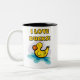 A yellow duck waddling on the blue water with text that reads I Love Ducks on duck T-shirts, hoodies, mugs, bags, cards, magnets, keepsakes, mousepads, stickers, pillows, key chains, and lots of other duck apparel and gift items.