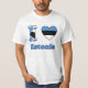 I heart Estonia t-shirt for those who love Estonia. I love Estonia. The Estonian flag is blue, black and white in horizontal stripes. The flag is in a heart form. The letter I is white with 5 small hearts and the hearts are blue and black.