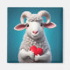 Funny Ewe holding a red heart. could be used as a bag for knitting wool, needles etc.