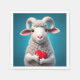 Funny Ewe holding a red heart.