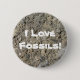 This button pin features a close-up photo of a hash of miscellaneous fossils! The white text reads "I Love Fossils!"