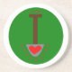 This awesome sandstone coaster features an image of a spade with a heart on it and text that says “I love gardening”. The spade has dug the writing into a nice green circular lawn.