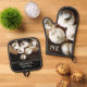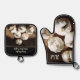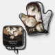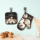 A humourous culinary pot holder and coordinating oven mitt with white Garlic cloves tastefully arranged and highlighted against a black and brown background and a fun warning that I Love Garlic more than People. The text may be personalised with a Name or your own text and a Monogram or Initials. This coordinating set or each individually makes an ideal gift for a gourmet chef, your favourite cook or Italian cuisine lover. Coordinating aprons are also available; see our Garlic Collection for more ideas.