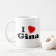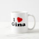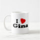 I love Gina! Is your name Gina? Do you have a husband, boyfriend, male family member or male friend who you know loves you? Or do you have a wife, girlfriend, female family member or female friend named Gina whom you love deeply? If so, this "I Love" mug is exactly the gift that you're looking for! The design features the letter "I" in black lettering with a red heart on the top and "Gina" in black lettering on the bottom.
