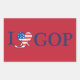 Highlight your Republican Pride and display your conservative American values with these beautiful "I Love GOP" Rectangular Glossy Stickers. Perfect for cars, trucks, jeeps, and anywhere you want to boost the Grand Old Party.