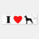 Our classic "I Love Great Danes" bumper sticker is perfect for dog lovers that want to show off their favourite breed. With a black letter I, a red heart, and a black German Mastiff silhouette all in a row. Wonderful Great Dane gift!