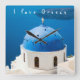 I love Greece Church Santorini blue photo and text Square Wall Clock
