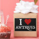 I Love (Heart) Antiques. Funny accessory is a great antique lover gift for a man or woman who loves collecting, thrifting, antiquing & hunting for antiques & collectibles at a garage sale, yard sale, estate sale, flea market, thrift shop or antique store. If you're an antique hunter & collector, and your hobby is finding and shopping for antique furniture, jewellery, art and other vintage items, this design is for you!