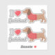 Adorable cartoon wiener dog in a red plaid sweater. Also includes “I Heart Dachshund” lettering. The word “Dachshund” can be replaced with your dog’s name.