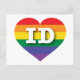 This postcard features a heart with a rainbow pride design and the bold, white, capital letters ID, the official abbreviation for Idaho, the gem state.