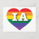 This postcard features a heart with a rainbow pride design and the letters IA. Atop the stripes, within the heart are the capital letters IA, the official abbreviation for the state of Iowa, in a bold white font. The reverse side of the card is blank, awaiting your personalised text or handwritten sentiments. Show your true colours, support marriage equality, and celebrate gay pride.