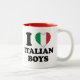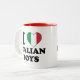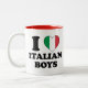Ik houd van Italiaanse jongens. I heart Italian boys. Met zwarte letters en het hart is met de Italiaanse vlag. Als je gek bent op jongens die uit Italië komen.