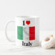 Show everyone your love for the country of Italy with this coffee mug featuring the Italian flag and map outline of the country! The background colour of the product is customisable to fit your preference.