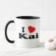 I love Kai! Is your name Kai? Do you have a wife, girlfriend, female family member or female friend who you know loves you? Or do you have a husband, boyfriend, male family member or male friend named Kai whom you love deeply? If so, this "I Love" mug is exactly the gift that you're looking for! The design features the letter "I" in black lettering with a red heart on the top and "Kai" in black lettering on the bottom.