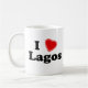 I love Lagos! Are you from Lagos, Nigeria? Do you have a friend or family member who loves Lagos, Nigeria? If so, this "I Love II" mug that shows love for Lagos is exactly the gift that you're looking for! The design features the letter "I" in black lettering with a red heart on the top and "Lagos" in black lettering on the bottom.