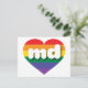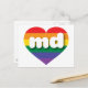 This postcard features a rainbow pride heart overlaid by the bold, white, lower case letters md, a playful abbreviation for Maryland, the old line state. The reverse side of the postcard is blank, awaiting your personalised text or handwritten sentiments. Show your true colours, support marriage equality, and celebrate gay pride.