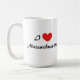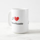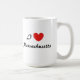 Custom mug featuring trendy minimalist text design with a red heart and "I Love Massachusetts" in brush script typography! Make it a nice gift for yourself or anyone who loves Massachusetts. Available in several different styles and colours. Choose 11oz or 15oz coffee mug.