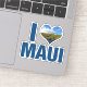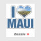 I love Maui Hawaii sticker with a cute heart shaped photo of the blue Hawaiian ocean and green mountains. Beautiful coastal waters make me happy on summer vacation. Cute keepsake photography design with windmills on a hill.