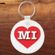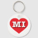 This key chain features a vibrant, red heart containing the bold, white, upper case letters MI, the official abbreviation for Michigan, the Great Lakes state.