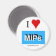 Round design fridge magnet with "I love MIPs" slogan and mipdatabase.com logo