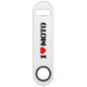 Minimal I Love Moto inspired bottle opener for riders who live and breathe motorcycles Clean bold design built for garage time.