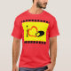 I give wanted to give this a 4 instead of a 5 because these Basic DARK T0shirts run unexpectedly SLIM or Narrow. Which is great if you do not have a potbelly, but I have a paunch. It isn't the shirt's fault that I've got a beer belly. The design and shirt itself is a quality cotton shirt. The color is more of a deep purple, but still a very pretty color. The Basic DARK T-shirts run a bit SLIMMER than the Basic Ts. The neck is a fraction narrower (or seems to be narrower) also. I'm a paunchy middle-aged woman and my neck is 12 inches (31cm) thick and the neckline fell about the same as in the photo of the man, and I had the desire to tug it a bit. So if you're a thick necked man or like loose shirts, be aware these are slimmer shirts. Once I get rid of my lockdown paunch it'll look great. The shirt washed well in cold water with no apparent bleeding. We don't have a dryer, so it hung dry. Did not shrink. Love the colors and the design. The design looks smaller on my shirt than it does on the model on-line. But still, it looks good on the shirt. The printing looks as it does on the model, just the size seems fractionally smaller. Washed garment in cold water, hung dry and design appeared unaffected.