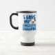 Shop for cute American Bulldog travel mugs in our online store! The right side of the design shows a drawing of the bully, with retro two-toned blue print. It reads, "I Love my American Bulldog." This delightful Bulldog merchandise for dog lovers has been drawn in an adorable kawaii cartoon style. We also have this design on a fantastic selection of other American Bulldog products, including shirts.