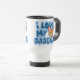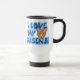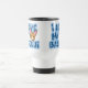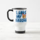 Cute Basenji travel mug! On the right side is a drawing of a Basenji, with super cool retro funky blue print. It reads, "I Love my Basenji." This adorable Basenji merchandise for dog lovers in drawn in a Japanese kawaii cartoon style. We also have this design on a wondrous assortment of other Basenji products, including shirts.