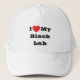Custom Trucker Style Baseball Hat In White Colour and Black Text Colour and casual fun fashion statement accessory printed with customisable template text phrase I ♥️ My Black Lab on Hats, Shirts and Pet Products by TheFabricSeal print on demand shop at Zazzle.com #ZazzleMade https://www.zazzle.com/store/thefabricseal