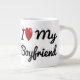 Mug with I heart my boyfriend in black 3D text. Available in several sizes and styles.