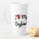Mug with I heart my boyfriend in black 3D text. Available in several sizes and styles.