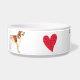 I absolutely love this product! I was a little concerned prior to buying it, but I was blown away by the quality of the item. The bowl is sturdy and arrived clean without any damage. The printing was crisp and clean and looks Better than I hoped! My dogs immediately knew these were for them and get very excited to pose with their new bowls! Definitely recommend and will purchase more in the future! The printing is crisp and well done. It looks absolutely beautiful on the bowl, and I can tell that it’s going to hold up well over time.