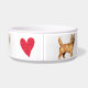 I absolutely love this product! I was a little concerned prior to buying it, but I was blown away by the quality of the item. The bowl is sturdy and arrived clean without any damage. The printing was crisp and clean and looks Better than I hoped! My dogs immediately knew these were for them and get very excited to pose with their new bowls! Definitely recommend and will purchase more in the future! The printing is crisp and well done. It looks absolutely beautiful on the bowl, and I can tell that it’s going to hold up well over time.