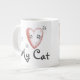 I (heart) love my cat, with paw prints, and watercolor print on jumbo mug