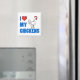 I Love My Chickens cute magnet featuring a cartoon chicken. Show off your love for chickens with this cute design. Great for someone who owns backyard chickens.