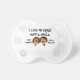 This pacifier is the perfect gift from a proud (and a little crazy) aunt and uncle to the new baby. Just customise with your own names and you have a great gift that will have baby always thinking about their aunt and uncle. For different variations on hair styles, hair shades or eyes colours please visit our store.