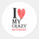 I Love My Crazy Boyfriend Purview With Red heart95 Classic Round Sticker