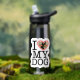 Add your dog's photo to this "I love my dog" photo water bottle.