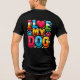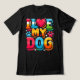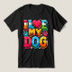The T-shirt design features the phrase "I Love My Dog" in bold, playful lettering, with a heart symbol replacing the word "love." Beneath or around the text, there are cute dog-related illustrations, such as paw prints, bones, or a silhouette of a dog. The design gives off a warm, fun vibe, perfect for dog lovers to express their affection for their furry companions. The colour palette is simple and cheerful, with contrasting colours to make the design pop on a variety of T-shirt backgrounds.