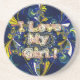 I Love My Girl: Abstract Blue & Golden Fractal Art Coaster