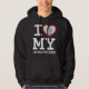 Create your own I Love My Girlfriend Photo Text hoodie with this modern and funny shirt template featuring a cool slab serif font and girlfriend photo into a huge red heart. Add your own photo, your name or any personalised text. The "I love My Girlfriend" t-shirt design is inspired by the classical "I love NY" logo t-shirt graphic design made by Milton Glaser, and I used Courier New Slab font instead of the original rounded slab serif typeface American Typewriter used by Glazer. Make your own unique gift for your boyfriend with this I heart my girlfriend hoodie or transfer design on tshirts!