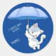 Stickers with a kitty hanging from a umbrella personalised with kitty's name. " I love my Kitty"