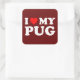 I Love My Pug With Red Heart Square Sticker