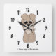 A cute clock for any room of the house. It features a cute cartoon schnauzer dog in the centre. It says I love my schnauzer at the bottom.