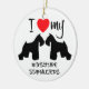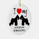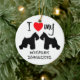 This "I love my Miniature Schnauzers" Christmas ornament is perfect for anyone who owns more than one Miniature Schnauzer.