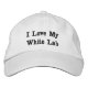 Custom Embroidered Alternative Apparel Basic Adjustable Baseball Cap Hat in White Colour and Black Lettering Colour printed with customisable template text phrase I love My White Lab on Hats, Shirts and Pet Products by TheFabricSeal print on demand shop at Zazzle.com #ZazzleMade https://www.zazzle.com/store/thefabricseal
