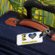 Leuke bagagelabel met de tekst: i love Nebraska ( i heart Nebraska) Het hart is met de vlag van de staat Nebraska. Kleuren: geel, en blauw.
