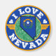 I Love Nevada State Map and Flag. Taking its inspiration from the state flag, this design features blue, white, yellow and green elements, framing the Nevada state map and flag. With cool distressed typography featuring the phrase 'I LOVE NEVADA' and hearts.